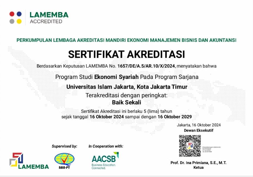 S1 Ekonomi Syariah – Terakreditasi (BAN-PT Baik Sekali)