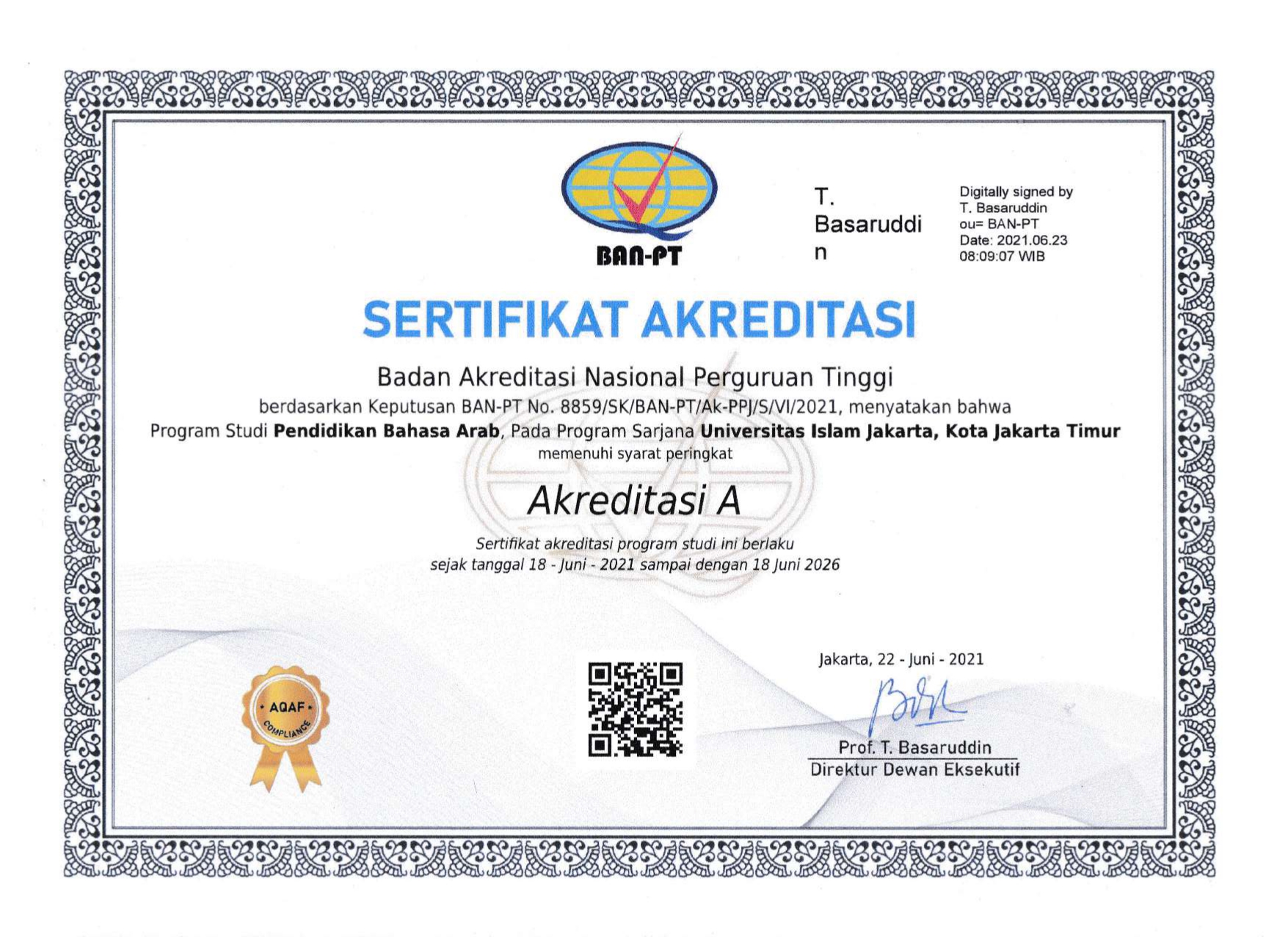 S1 Pendidikan Bahasa Arab – Terakreditasi (BAN-PT A)